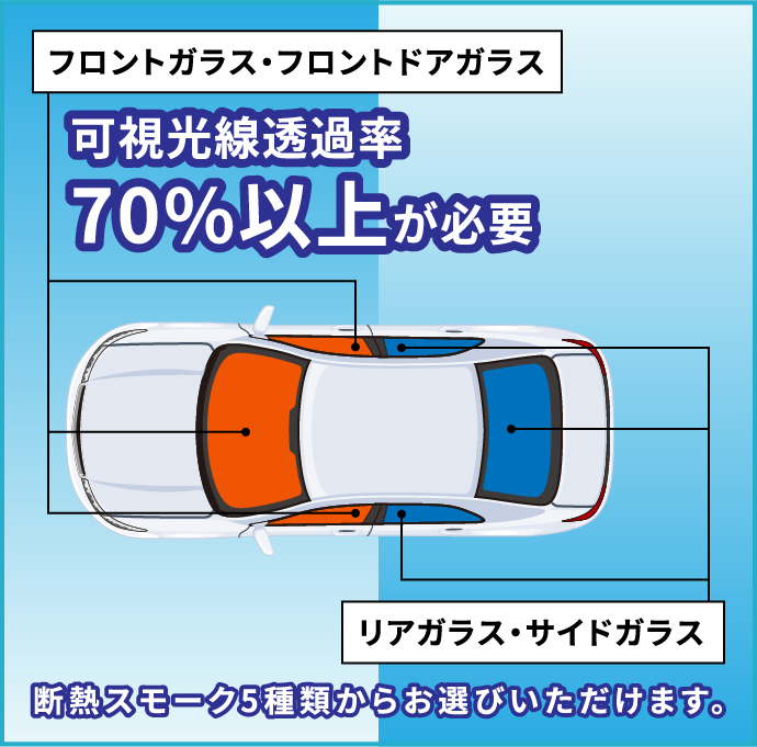 「PT-500」により測定された可視光線透過率が70%以上あれば、道路運送車両の保安基準第29条第3項に規定された要件を満たすことになります。