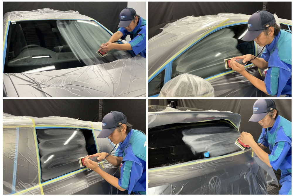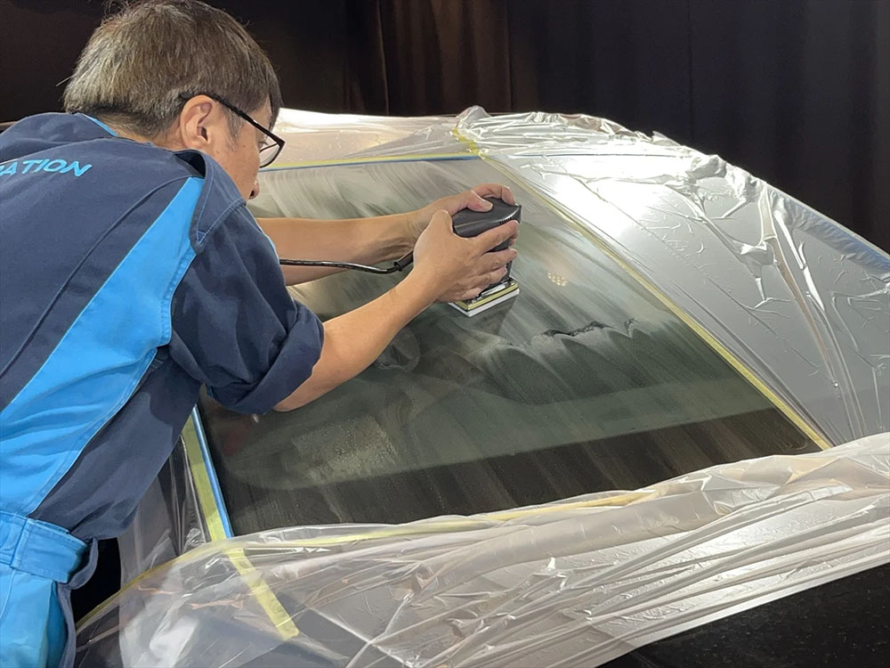 ガラス撥水コーティングをする上で、ガラス研磨 (ガラス磨き) は下地処理の位置付けになりますので必須工程となります。