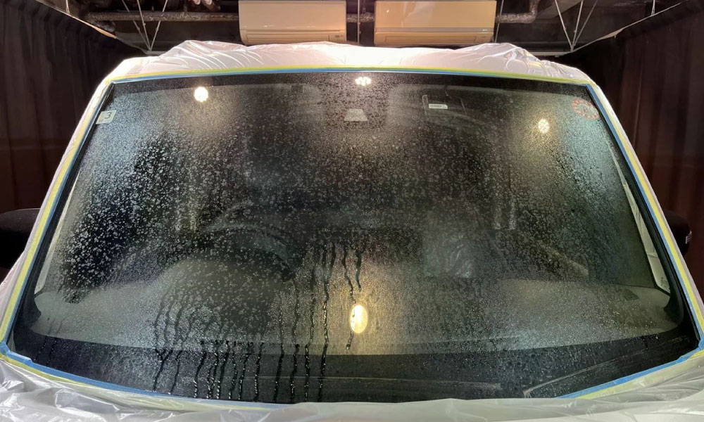 下地処理の位置付けとなるガラス研磨 (ガラス磨き) によってガラスをクリアな状態にした後、ガラス撥水コーティングを施工してヒーター乾燥まで行っていますので、防汚性が長期間持続します。