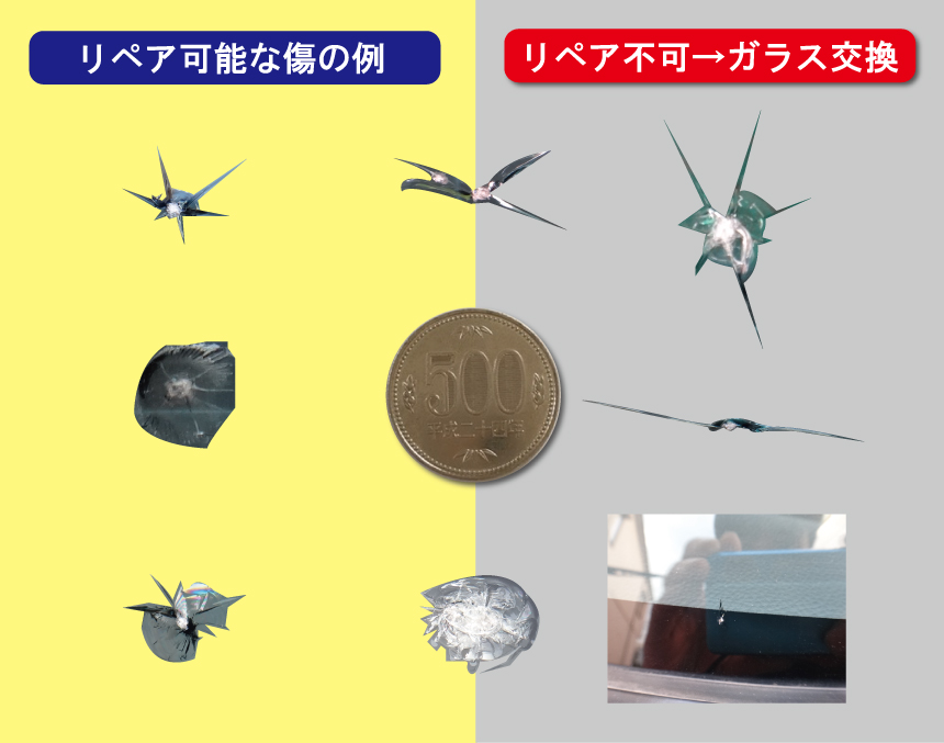 フロントガラスリペアが可能な傷の目安は?