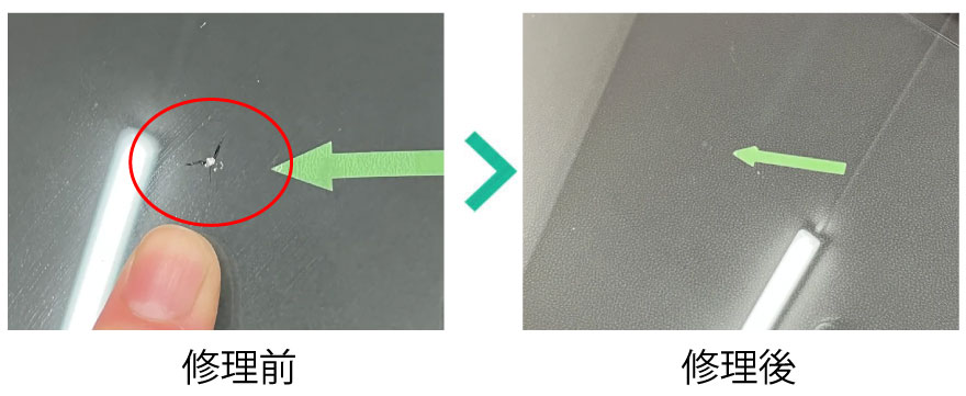 もちろん修理に取り掛かる前にリペア後のリスク等のご説明をし、了承していただいた上での修理となりますが、その多くは普通に修理可能な傷です。