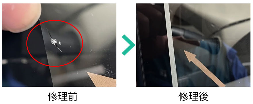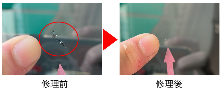 車のフロントガラスリペア・修理 ビフォーアフター