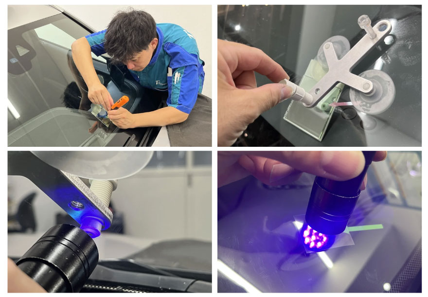ティーズフィルムでは、フロントガラスリペアに使用するレジンは紫外線硬化タイプではなく、可視光線硬化タイプのレジンを使用しています。