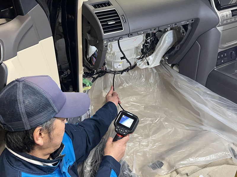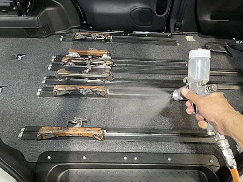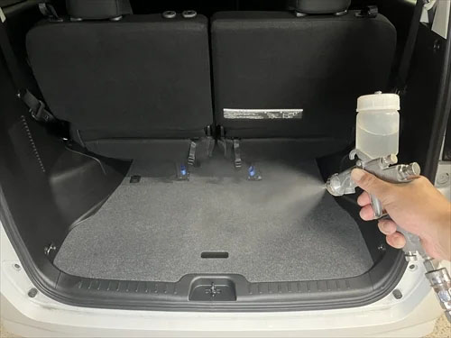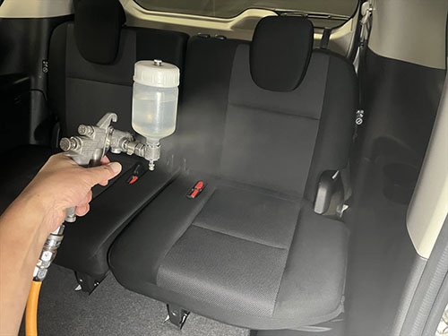 クリーニング後、仕上げに車内全体に消臭剤を散布します。