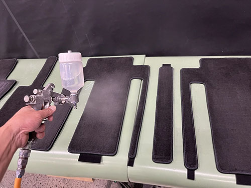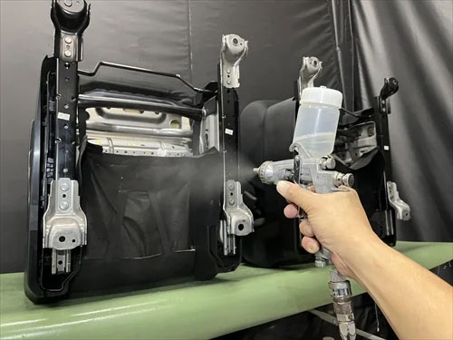 ティーズフィルムの車内クリーニングは、生地や素材にあった除菌効果のある特殊溶剤を使い分け、