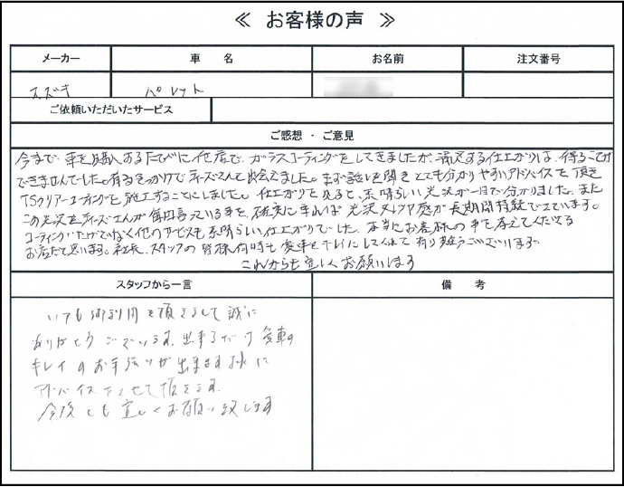 コーティングの正しい情報・アフターの重要性・施工業者の選び方・ティーズフィルム独自の取り組み等を、わかりやすく丁寧にお伝えさせていただきます。