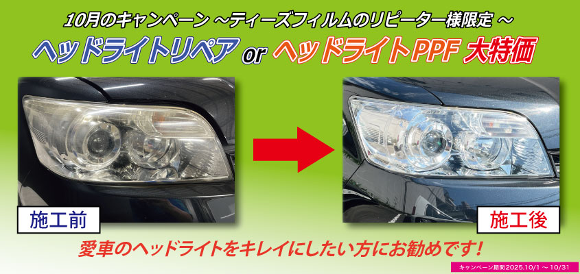 2025/10/01 リピーター様キャンペーン ヘッドライトリペア・ヘッドライトPPFを大特価でご利用頂けます!