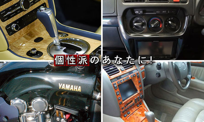 カーボン調加工・ウッド調加工などをお好きなカラーにドレスアップ出来ます。