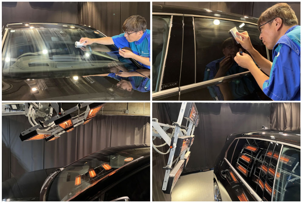 下地処理の位置付けとなるガラス研磨 (ガラス磨き) によってガラスをクリアな状態にした後、ガラス撥水コーティングを施工してヒーター乾燥まで行っていますので、防汚性が長期間持続します。