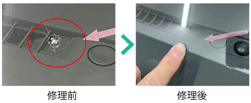 車のフロントガラスリペア・修理 ビフォーアフター