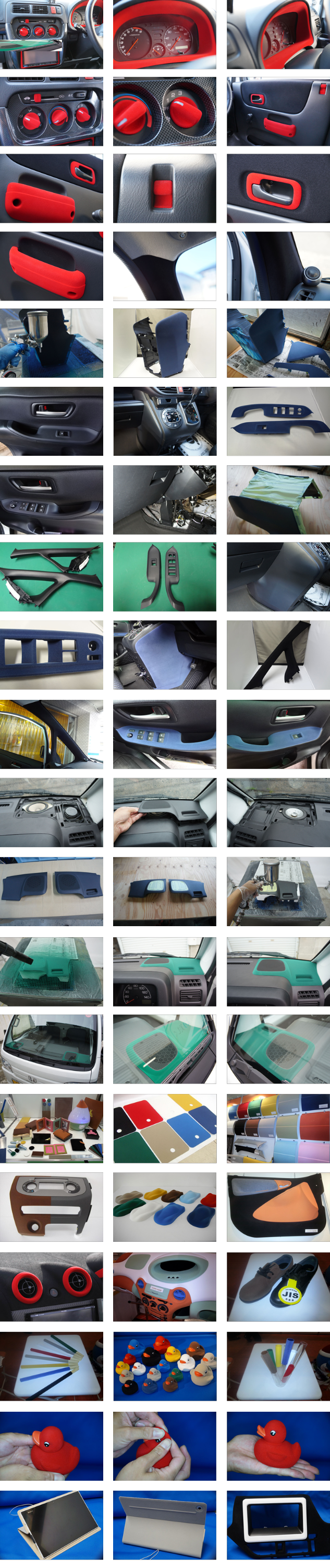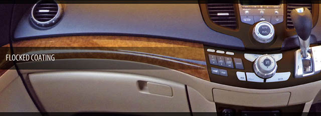 フロッキーコーティングは、塗装によって植毛の風合いを再現するトップコーティング用の触感塗料で高級車のピラーなどに採用されています。