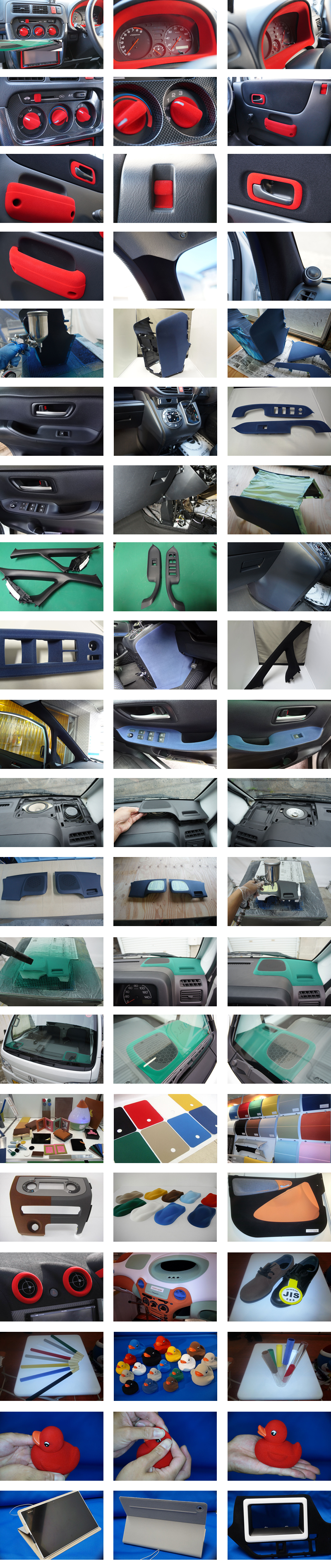 フロッキーコーティングは、塗装によって植毛の風合いを再現するトップコーティング用の触感塗料で高級車のピラーなどに採用されています。