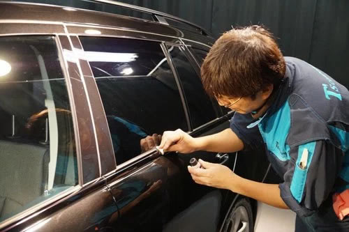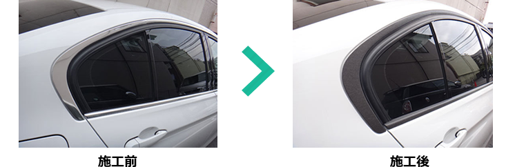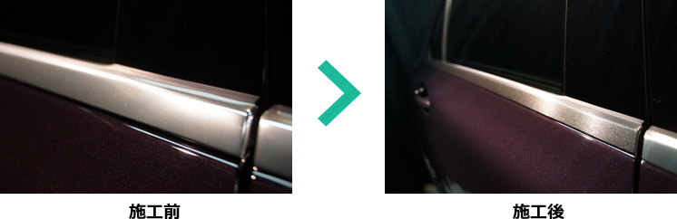 ティーズフィルムでは専用の機材や研磨剤を使ってモールの腐食 ・ 劣化を磨き、新品同様によみがえらせた後、専用コーティングで保護します。