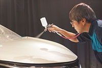 - ・高品位のクリアー樹脂塗料と特殊硬化剤を配合したベースコートをクリアー補充することで塗装面を保護し、他に類を見ない圧倒的な膜厚感とヌレツヤ感が得られる