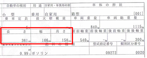 〔Step.1〕車検証の 長さ×幅×高さ からボディ体積を求めます。