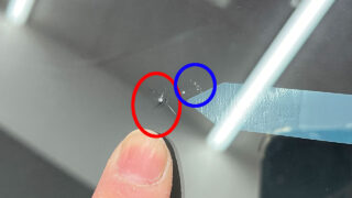 飛び石でついた傷からヒビが伸びていますね~![]()