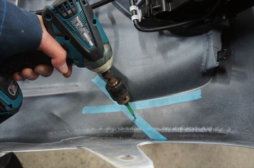 フロントリップスポイラー の穴あけ加工を行います![]()