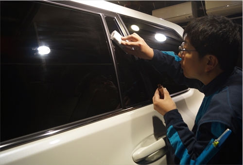 新車のガラスは油膜等、不純物が付着している状態ですので