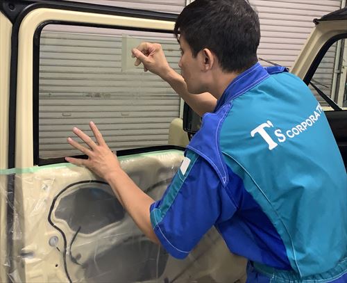 成形したフィルムを丁寧に貼っていきます>^_^<