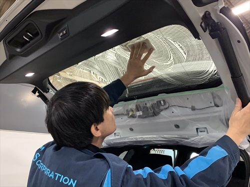 成形したフィルムを丁寧に貼っていきます>^_^<