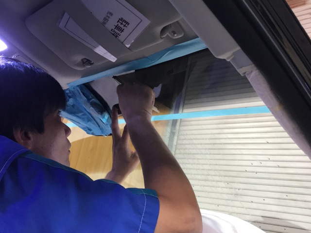 まずは車内が汚れないように養生をして、フィルム剥がし&清掃作業(‘ω’)ノ