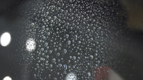 水を吹き掛けてみると、ガラスを磨いた方は 親水状態 ですが