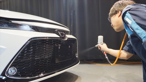 特殊照明 を配置したコーティングブース内において