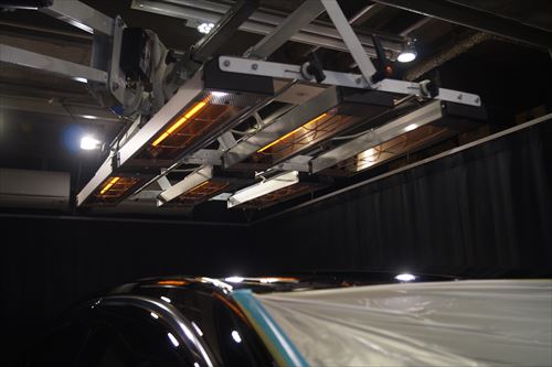 コーティング施工後は、カーボンヒーターでしっかりと乾燥![]()