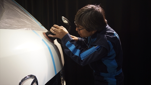 新車の塗装を更にキレイにすべく、いつもの研磨工法で磨いていきます!(^^)!