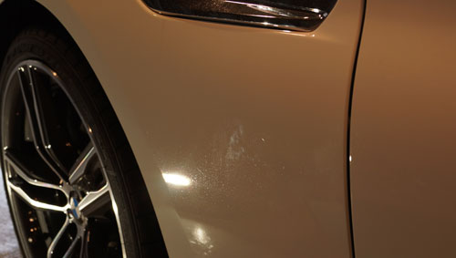 保護シートを剥がしたら 特殊照明 下でボディチェック