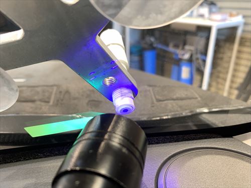 ヒビの末端までレジンを注入し、加圧を掛けた状態で・・・・・
