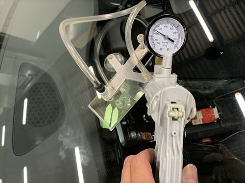 ヒビの末端までレジンを注入し、加圧を掛けた状態で・・・・・