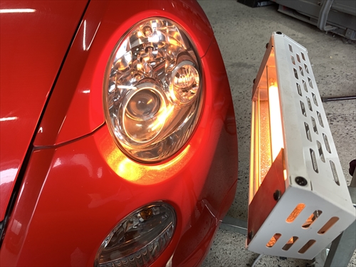 キッチリ養生した後、まずは ヘッドライト研磨 で