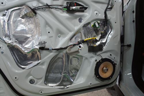 純正のスピーカーを取り外してデッドニング作業から開始です。
