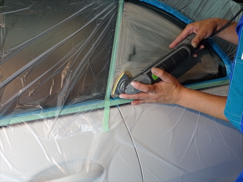 キッチリ養生をしたら、まずは ガラス研磨 で
