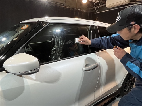 車の大きな面積をしめるガラス部分に