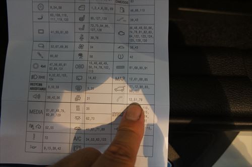 資料と実際のヒューズ電源BOXの位置関係とを見比べながら