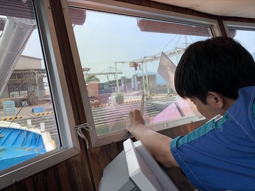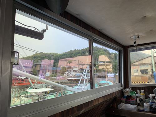 操舵室のガラス7面に