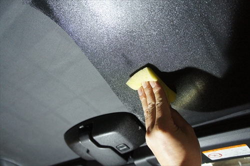 ソフトトップの内側を 特殊溶剤 を使ってクリーニングしました!(^^)!