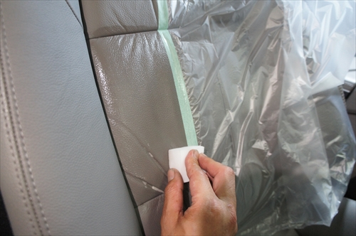 レザー専用の 特殊溶剤 を使ってキレイにしていきます>^_^<
