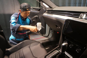車内全体をキレイにした後は 消臭剤 を散布($・・)/~~~