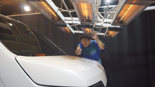 コーティング施工後は、カーボンヒーターを使用して