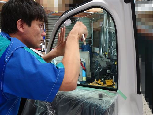 フロントガラスの足らず部分と、追加でフロントドアガラスにも