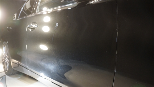 日産 スカイラインにカーコーティングを施工しました。新車ですがたくさんの不純物が浮き上がってきました。