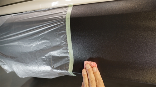 洗車 が終わったボディに 特殊溶剤 を這わせると