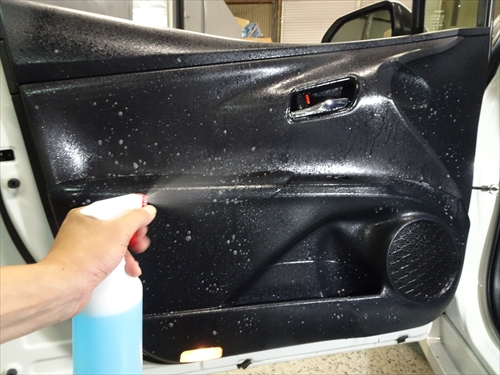 車内全体のクリーニングが終わったら、次は消臭剤を散布していきます。