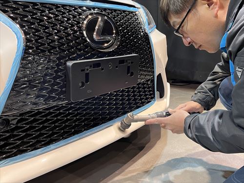 特殊照明を配置した誤魔化しの効かないコーティングブース内において、塗装膜厚計や光沢計等の計器類を用いながらボディチェックをしていきます。