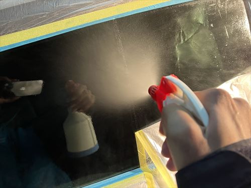全面ガラスをキッチリ磨いてスッピン状態にしたら、ここからガラス撥水コーティングを施工していきます。
