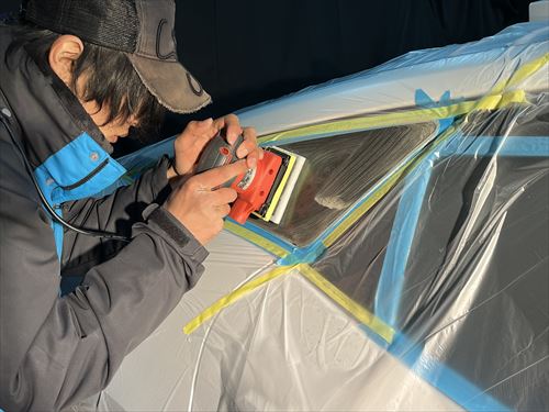 フロントガラス以外も同様に、ガラス研磨を行ってキレイにしていきます。