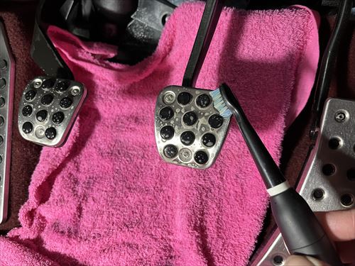 ブラッシングして生地の中の汚れを浮き上がらせ